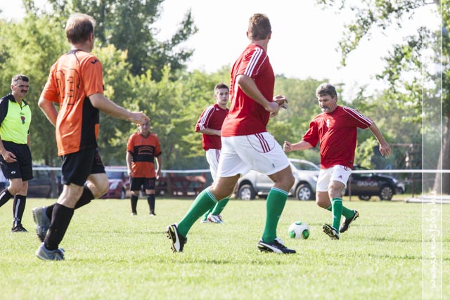 A sportprogramok az utánpótlás csapatok tornájával kezdődtek, majd a ’93-as bajnok serdülő csapat és a mostani ifi mérkőzött egymással. Érkezett a kárpátaljai Viskről is egy csapat; ők a Hunyadi nagycsapatával játszottak egy barátságos meccset. A két utóbbi meccs között a Hunyadi öregfiúi a szarvasi szeniorokkal feldúsított MLSZ csapatát fogadták, és játszottak egy sporttörténeti döntetlent. A mérkőzés utolsó percében a Hunyadi ellen ítélt büntetőt a végrehajtó nagyon sportszerűen Petrás Endre kapus kezébe rúgta. Mint később mondták, nem tizenegyessel szerettek volna nyerni az amúgy nagyon baráti hangulatú találkozón. Az MLSZ csapatában Mészöly Géza, válogatott labdarúgó mellett pályára lépett országgyűlési képviselőnk, Dankó Béla is.