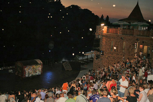 Szombat este a Vízi Színházban Szigligeti Ede: Liliomfi című komédiáját láthatta a nagyérdemű közönség. A Kárpátaljai Megyei Magyar Drámai Színház (Beregszászi Illyés Gyula Színház) és a Gyulai Várszínház közös produkciója méltán aratott sikert a közönség körében. A három felvonásos darabot, szünet nélkül játszották végig. Ismerős arcokkal is találkozhattunk a színészek között, a Liliomfit játszó Rácz Józsefet, a Mariskát játszó Vass Magdolnát és az Erzsit alakító Orosz Melindát az elmúlt évben is láthatta a szarvasi közönség a Sólyompecsenye című előadásban. És játszott a nagyszerű Katkó Ferenc a Jókai Színház művésze is. Nem hagyományos előadást láthatott a közönség. Azonban végig lendületesen, vidáman, szívvel játszott mindenki, pedig biztos nem kis feladat végig színen lenni. Meg kell még említeni a Kamilla kisasszonyt alakító Kacsur Andreát és a Szellmfit játszó Sőtér Istvánt. A zenét a színpadon éppen nem játszó színészek prezentálták, hegedűvel, gitárral, klarinéttal, fuvolával, dobbal. Katkó Ferenc klarinétozott és gitározott is, ami meglepetés volt számomra. A két és fél órás előadást nagy tapssal köszönte meg a közönség.