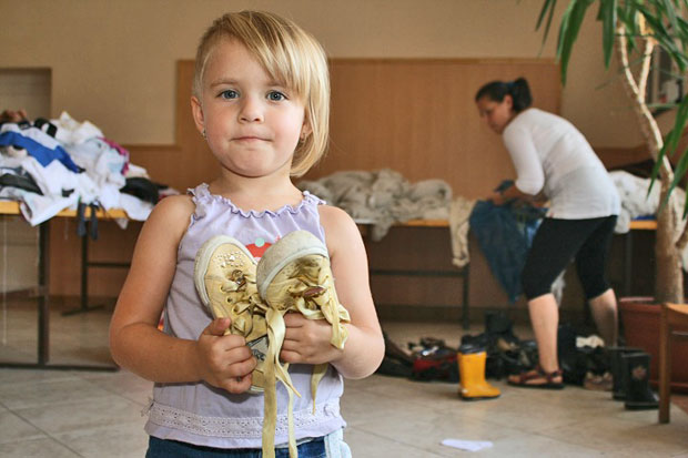 Judit ezúttal lányával és unokájával, Lilivel érkezett. A kislány egy pólót és egy sárga cipőt is kiválasztott magának, s egy fotózás erejéig nekünk is megmutatta.