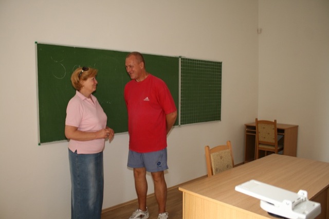 Molnár Istvánnéval együtt jártuk be az egykori szakmunkásképző épületét, amely láthatóan meglehetősen elhanyagolt állapotban van, de már látszik a jövő: a folyosók burkolatát kicserélték, több osztályteremben új parketták vannak, s néhol már a falakat is hófehérre festették. A felújítást végző szakembereket komoly feladat elé állította az a tény, hogy az épület falai a nem megfelelő csapadékvíz-elvezetés miatt felvizesedtek. Cserélni kellett az elektromos vezetékeket és a vízvezetékeket is.