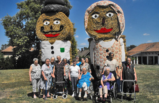 – Sokan be is csöngetnek hozzánk azzal, hogy szeretnék megnézni ezeket a különös alkotásokat. Jöttek már érdeklődők Kunszentmártonból és Szarvasról is. Mindenkit szívesen fogadunk, bátran jöjjenek, nézzék meg a büszkeségünket! – mondta Farkasné Tomonyicka Mária, a Gondozási Központ munkatársa. Elárulta azt is, hogy a négy és fél méteres szalmabábukat dr. Virág Sándorné intézményvezető ötlete alapján maguk a dolgozók készítették. Az örömben aztán együtt osztoztak a gondozott idős emberekkel.