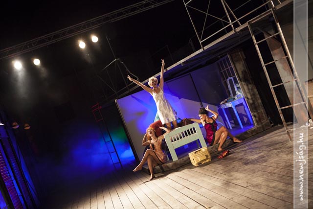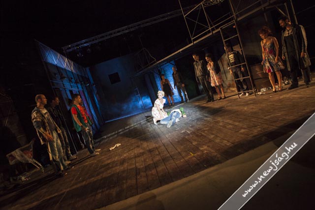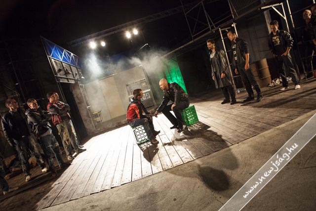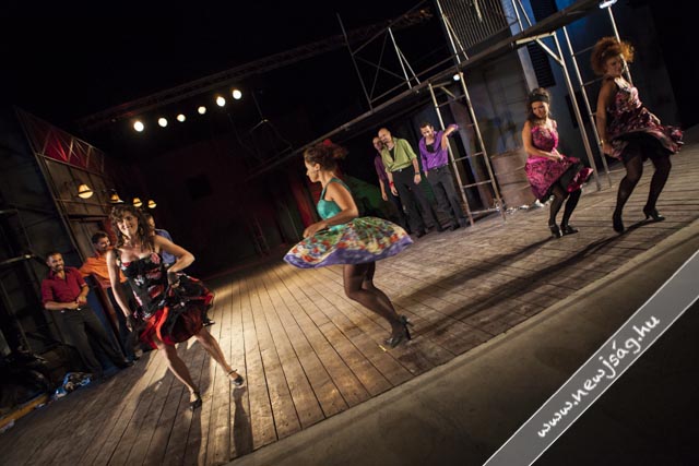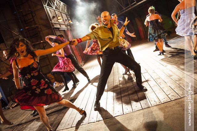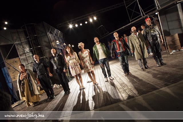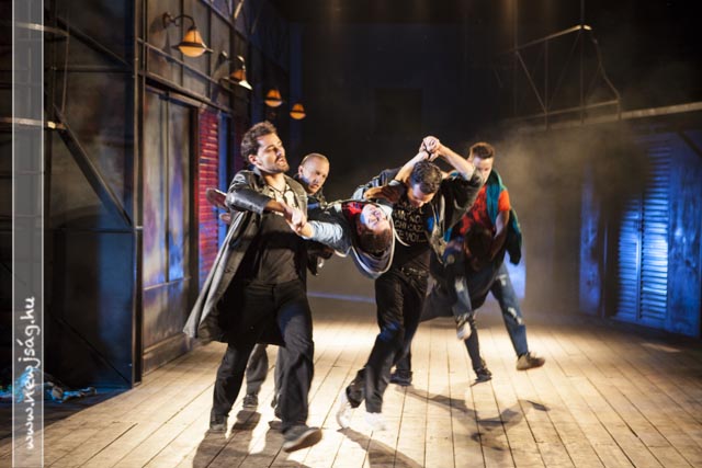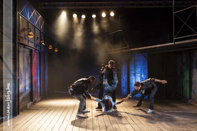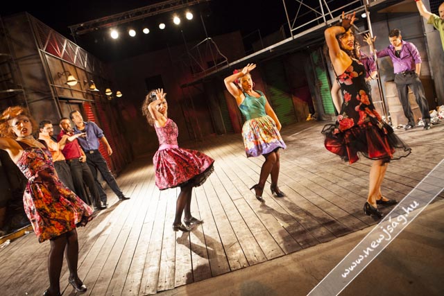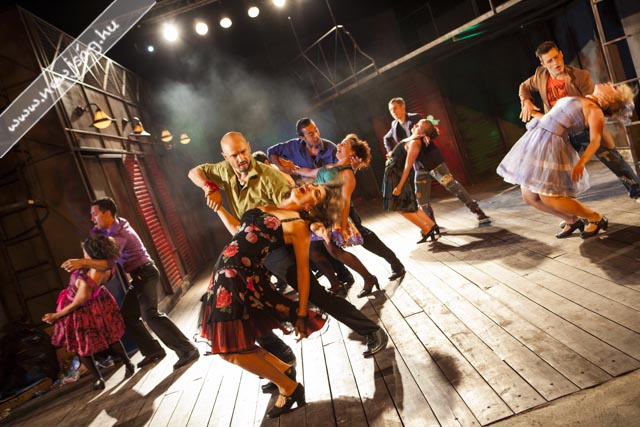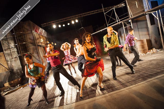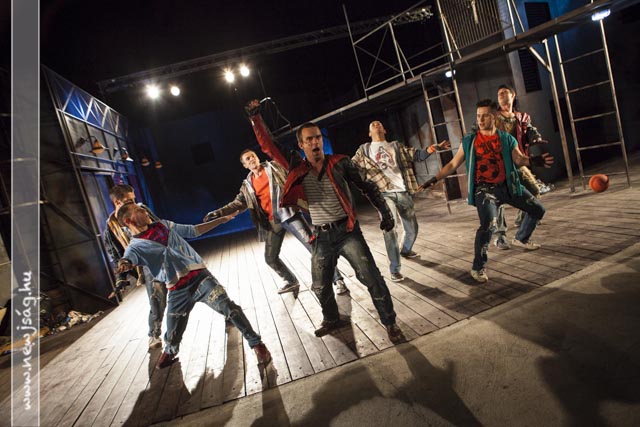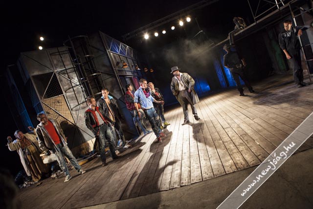 2013 utolsó fizetős előadását láthatták azok, akik a Magyar Teátrumi Társaság által üzemeltetett Vízi Színház nézőterére leültek csütörtök, vagy péntek este. Az Újvidéki Színház előadásában a West Side Story című történetet hallhatta, láthatta a közönség Nagy Viktor rendezésében. A történet számomra csak a film által ismert, és csak a vidéki színházak játsszák (Szeged, Kaposvár). Sokszereplős, komoly ének- és tánctudást igénylő alkotás. A zenéjét Leonard Bernsein szerezte, aki augusztus 25-kén lenne 95 éves, a szövegkönyvet Arthur Laurents írta, a dalszövegeket Sephen Sondheim. A szövegeket Miklós Tibor fordította magyarrá. A történet az 1950-es évek közepén játszódik New York West Side negyedében. Két rivális banda szeretné megszerezni a környék egyeduralmát, ezért harcra készülnek, az amerikaiak vezetőjük Riff és a Puerto Rico-i emigráns fiatalok vezetője Bernardo. Közben egymásba szeret az amerikai banda volt tagja Tony és a Puerto Rico-i emigráns fiatalok vezetőjének húga Maria. A vég elkerülhetetlen. Gyűlölet, gyűlölet szül. Lehet mai értelmet keresni a darabhoz, biztosan van, de ez a darab 1950-es évek közepén játszódott, a bandatagok a helyüket keresték. Megvédeni a területünket, vagy éppen területet szerezni teljesen mindegy. Az utca törvénye a rivális banda gyűlölete, a „hatalom” megszerzése, de bele sem gondolnak a következményekbe. Aki megpróbálja kicsit józanabbul megvilágítani a helyezetett, azt meg sem hallgatják (Doc). Két halál sem állítja meg őket, hogy elkövessék a harmadikat. Az Újvidéki Színház kihasználta a Vízi Színház adottságait, a három lépcsősort is bevonták a játéktérbe. A líra és az erőszak lüktetése ismétlődött, és sajnos az erőszak győzött. A díszletek olyanok voltak, ami miatt, a szélső sorok nem láttak jól, ezt megelőzendő Seregi Zoltán az előadás előtt kérte a nézőket a külső széléről üljenek a belső üres helyekre. Ezt nem negatívként értékelem, hiszen a díszlet – ahogy Seregi Zoltán is elmondta – nem erre a színpadra készül. Ettől függetlenül az előadás nekem nagyon tetszett. Fiatalos, lendületes előadást láthattunk. A zene, a szövegkönyv, a dalok nagyon jók, a színészek kiválóan teljesítettek. A tánc szinte bele épült a darabba, fantasztikus koreográfia született (koreográfus: Gyenes Ildikó), a színészek énekhangja szintén nagyon jó volt. Egy szívszorongató előadást láthatott a szarvasi közönség.