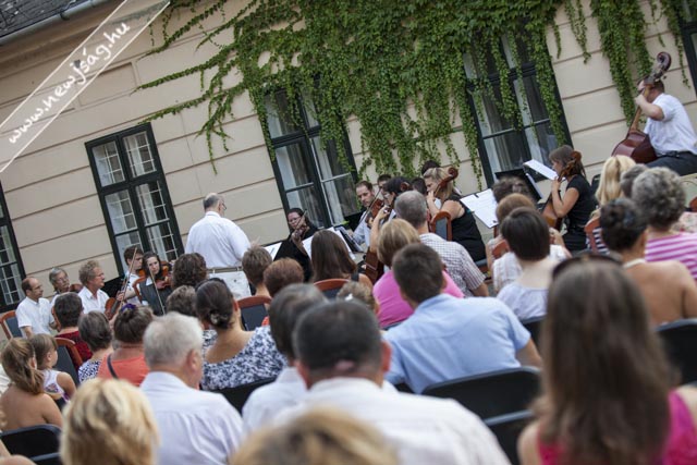 Ahogy azt Brachna Irén, a kamarazenekari estek állandó moderátora elmondta, próbálkoztak, próbálkoznak más helyszínekkel is. Elköltöztek ide, oda, de ennél szebb helyszínt még nem találtak a koncertekhez. Valószínűleg a közönség is szereti ezt a díszletet, mert a kertben rögtönzött nézőtéren minden szék elkelt. Talán a Lengyel-palota szokott ennyi, ha nem több látogatót vonzani, igaz, az a Szilvanapok keretein belül.