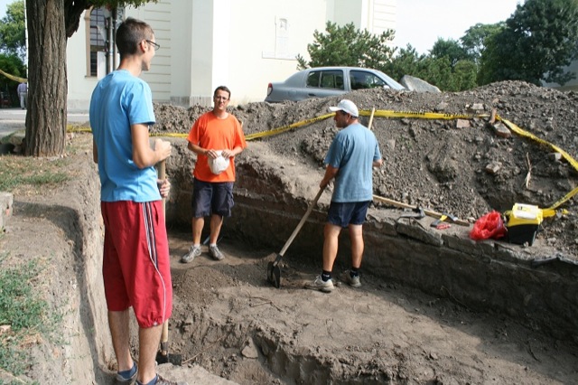 – A kulturális örökségvédelmi törvény szerint minden uniós beruházáshoz előzetes régészeti dokumentációt kell készíteni. Ez jelen esetben is megtörtént, s mivel erősen bolygatott talajról van szó, ezért csupán régészeti megfigyelést tartottunk szükségesnek – mondta Gulyás András, amikor csütörtökön felkerestük a Vajda Péter utcán folyó munkálatok helyszínén. Az Ótemplom szomszédságában azonban egy megépítendő szökőkút és annak gépháza áll majd. A gépház 2,5 méter mélységig nyúlik le a földbe, ezért itt a leletek megmentése érdekében régészeti szelvényt kellett nyitni. A munkálatok a beruházást nem lassítják.