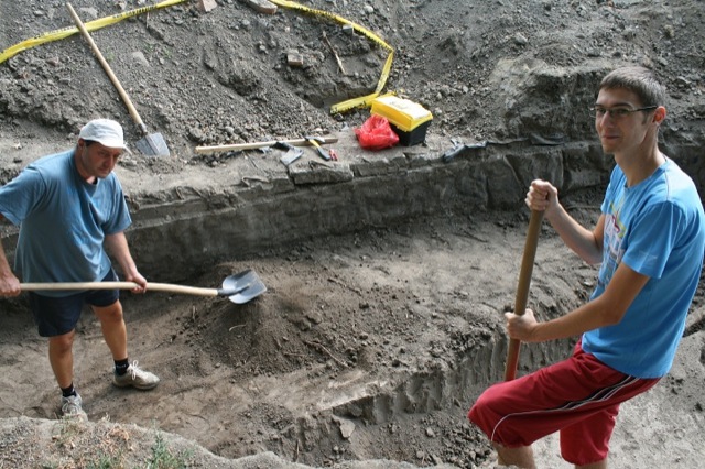 – A korábbi kutatásokból illetve régi katonai térképekből is tudjuk, hogy a török korban itt egy palánkvár állt. A várárkot 1978-ban dr. Juhász Irén régész tárta fel a gyakorló óvoda területén. Mi most több szelvényben vizsgáljuk a talajt. Az első szelvényben (ezt már betemettük) két modern kori gabonatárolót találtunk, benne elszenült gabonával, állati csontokkal és edénytöredékekkel. A második szelvényben, ahol most dolgozunk, mintegy 70-80 centiméter mélységben, azaz a török kor szintjén találtunk egy török szemetesgödröt. Kerámia-töredékek, tojáshéjak és egyéb tárgyak is előkerültek, amelyek már régészeti szempontból is érdekesek lehetnek. Hogy mennyire, az majd a tisztítás után derül ki. A szemetesgödör további részeinek feltárása érdekében szeretnénk kibővíteni a jelenlegi szelvényünket– avatott be a részletekbe Gulyás András. Hozzátette: jelenleg már a bronzkori szint (1 méter alatti réteg) feltárásánál tartanak, ahol eddig csupán néhány edénytöredékre bukkantak.