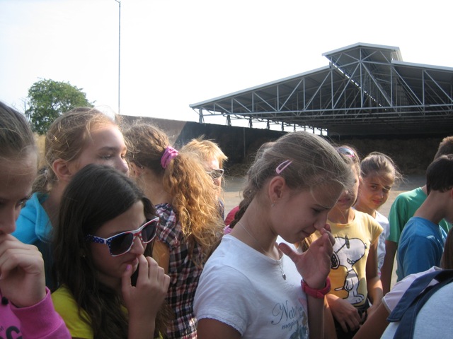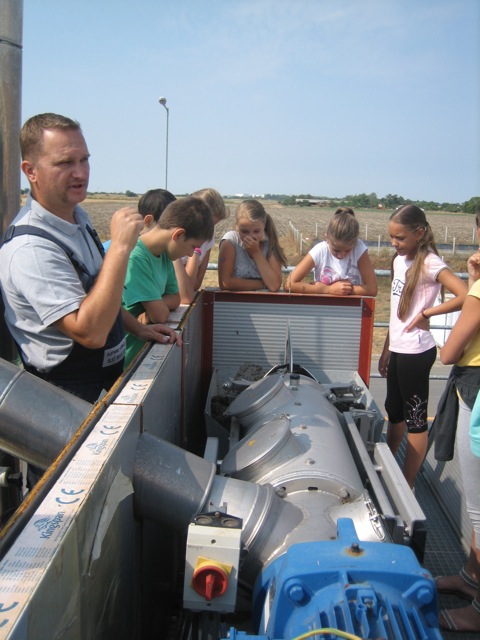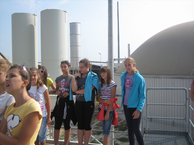 Másnap kerékpárral indultunk a Szarvasi Biogázüzembe, ahol Benyó András nemcsak szakszerűen, hanem a gyerekek számára érthető nyelven vezetett végig minket Magyarország legnagyobb ipari egységén, mely állattartó telepek szerves trágyáját, valamint az élelmiszergyártás rothadó hulladékát hasznosítja. A szagokat hamar megszoktuk, a szemfülesebb diákok pedig, hogy megörvendeztessék virágokat kedvelő szüleiket, némi bezacskózott „végterméket”is hazavihettek. A nap zárásaként az iskola informatika termében prezentációt készítettünk az üzemlátogatásról.