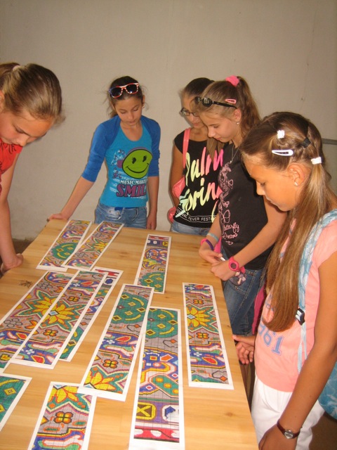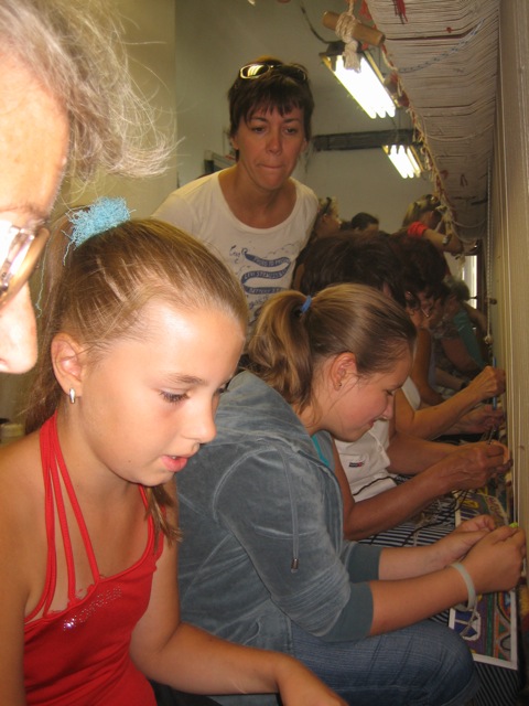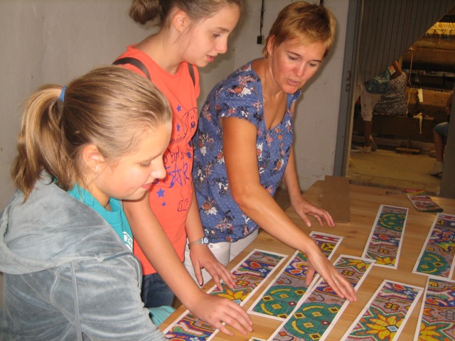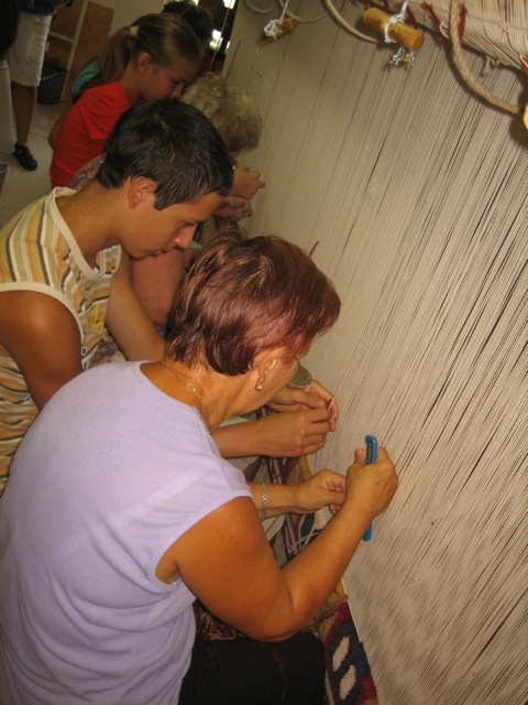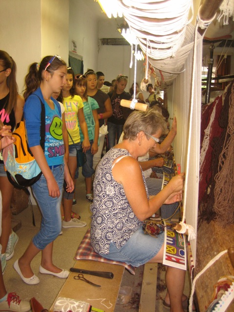 A harmadik napon ellátogattunk Öcsödre, ahol a Békésszentandrási Szőnyegszövőhöz tartozó asszonyai a Parlament egyik leendő szőnyegét készítik. Nem ez az első híres helyre kerülő kézműves termékük, hiszen a Sándor Palotát már díszíti egy munkájuk. A szövőnők óriási tapasztalattal rendelkeznek, közülük néhányan már 59 éve készítik a szebbnél szebb szőnyegeket! Persze mi sem voltunk restek, azonnal segítettünk, hogy hamarabb elkészüljön a munka, a márciusi határidőt tartani kell.