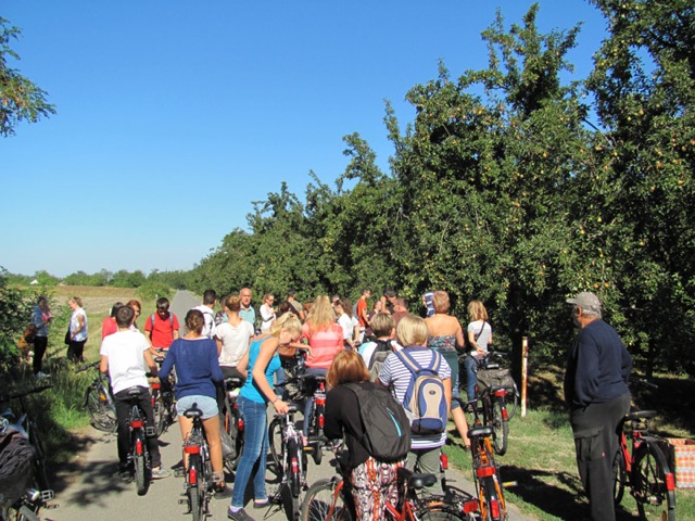A túrát Tóth Tamás természetvédelmi területfelügyelő vezette, aki számtalan érdekességet mesélt a Szarvas környéki tájról, annak múltjáról, jelenéről, az itt élő növényekről és állatokról. A csapat először a Bikazugi major, majd Furugy, az ősi halásztelepülés felé vette az irányt. Furugyon megpihentek egy kicsit, túravezetőnk pedig csak mesélt, és mesélt… A csapat a holtágat követve haladt tovább, mint megtudhatták, az ármentes jégkorszaki hordalékhát és az egykori ártér peremén. Békésszentandrásról visszatértek Szarvasra, ahol egy-két látnivalót még felkerestek, és számba vették mindazt, ami idén kimaradt, és amiért jövőre érdemes lesz újra visszajönni Szarvasra.