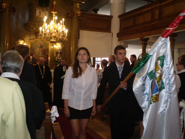 A fehér rózsák, mint a tisztelet, a nagyrabecsülés és az alázatosság virágai ékesítették a nagy múltú, sok magasztos gondolatot megélt ótemplom oltárát. Dr. Lipcsei Imre dékán ez elől köszöntötte Dr. Kozma Gábort, a Gál Ferenc Főiskola rektorát, Dr. Tóth Tamást a Szent István Egyetem helyettes rektorát, Dr. Káposzta Józsefet a SZIE Gazdaságtudományi Karának dékánját, Lázár Zsolt esperest, Bíró Gyulát a Gál Ferenc Főiskola Szarvasi Gyakorló Általános Iskola, Gyakorlóóvoda és Bölcsőde vezetőjét, valamint Földesi Zoltán tanácsnokot. A dékán felidézte a régi pedagógusok megbecsülését, bizakodva szólt arról, hogy e választott nemes hivatás egyszer visszakapja régi, megérdemelt fényét, melyre a díszdiplomások közül még sokan emlékezhetnek. A pedagógus lét egy teljes embert kívánó hivatás, mely egyben szeretet, tudás, önfeláldozás, kitartás, példamutatás is. A jövő pedagógusai közül Harzsa Ildikó hallgató Köztársasági Ösztöndíjban részesül, tanulmánya arról árulkodik, hogy birtokolja a tudást, kitartást, példamutatást.
