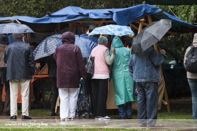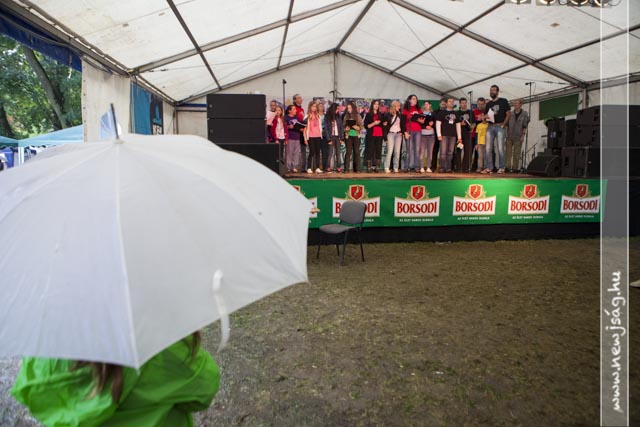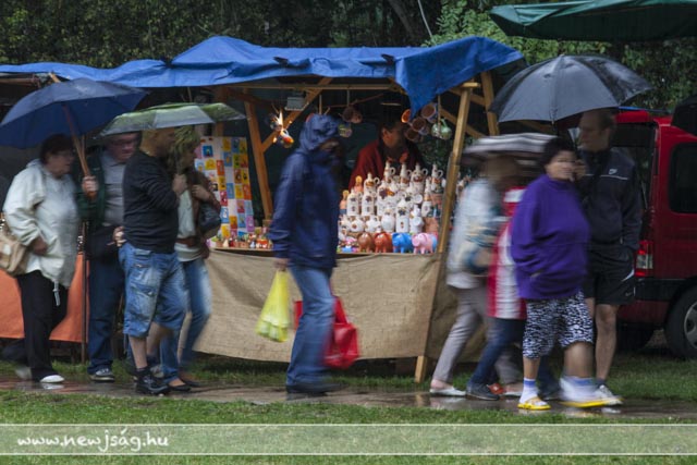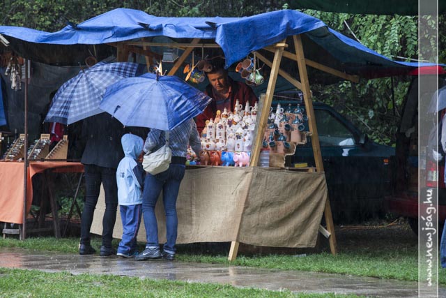 Ahogy azt a Kormányhivatal kihelyezett ügyfélkapujának a sátrából megállapíthattuk, a szarvasi gyerekek vízállók. A szülők és a felnőttek a ponyvák a biztonságából figyelték, amint a kicsik dacolva a -helyenként szakadó- esővel, élvezik a Kenderkóc Népi Játszóház játékait, miközben talán arra gondoltak, hogy gyerekkorukban ők sem voltak cukorból. Azóta eltelt 20-30-40 év, és a vízálló réteg lekopott, maradt az eresz alja.