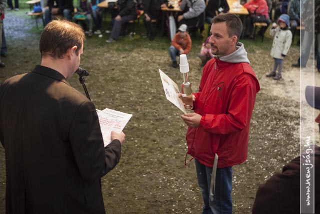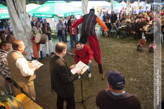 Az eredményhirdetés előtt, ahogy azt korábban jeleztük már, egy drámai bejelentésre is sor került. A pálinkaminősítés okleveleinek rendezgetése miatt csúszásban levő díjkiosztásig Csasztvan András, az esemény házigazdája tartotta szóval az izgatott nevezetteket, mikor egyszer bejelentette: “én már nem tudok többet beszélni”. Az Andrást ismerőknél “szó bennszakad, hang fennakad, lehellet megszegik”. Ilyen még nem volt. Lehet, hogy vége a bulinak? Szerencsére nem. Mint kiderült, ez nála csak annyit jelent, mint mikor régen a Trabantot tartalékra kellett venni, benne is maradt még kb. tízpercnyi szó.