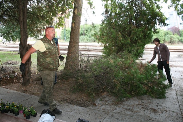 Mintegy tizenöt önkéntes serénykedett szombaton délután a szarvasi vasútállomás körül. Virágokat ültettek, fákat gallyaztak, avart gereblyéztek.