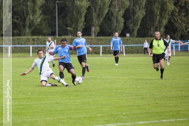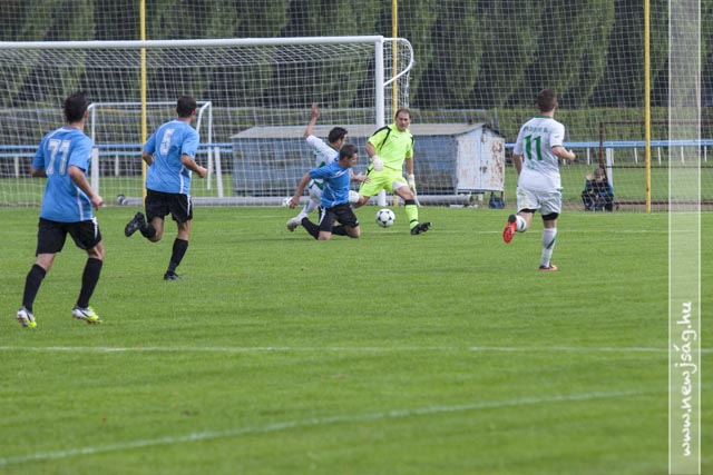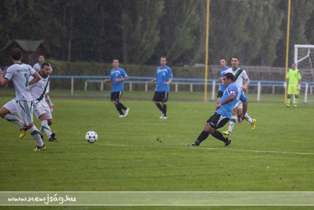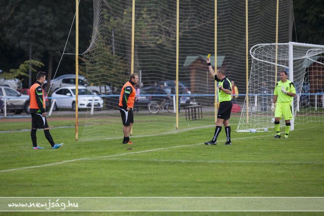 A két csapat felállt a kezdéshez. Gyuga Péter belefújt a sípjába. Ebben a pillanatban elkezdett esni, majd zuhogni. Miklya a 34. percben -egy lesgyanús helyzetből- lőtt egy gólt. 0:1.
