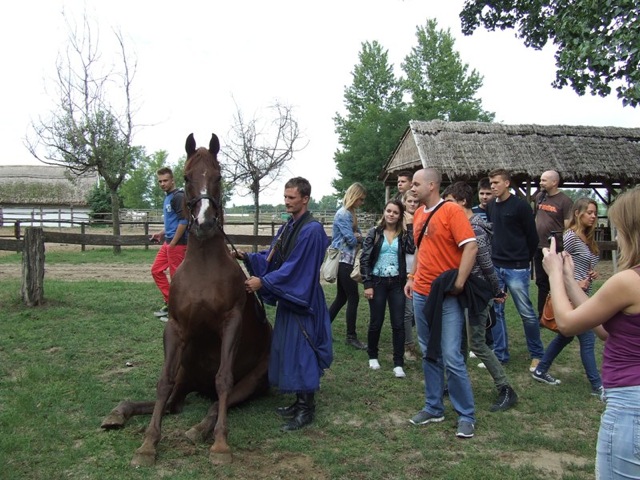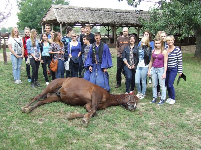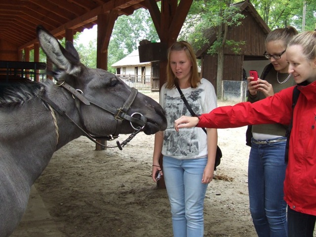 Csütörtökön Lajosmizsére, a Tanyacsárdába látogattunk, ahol friss, meleg pogácsával és bodzaszörppel vártak ránk, majd elindultunk egy rövidebb lovas kocsi túrára. Amikor visszaértünk, rögtön kezdődött is a lovasbemutató. Először a csikósok karikás ostorukat használva hajtották a lovakat, majd egyesével a pusztaötös, a csikósok a különböző ügyességi feladatokkal, mint például a ló leültetése, a négyesfogat akadályhajtással, mutatkoztak be. Mindezek után magunk is kipróbálhattuk a lovaglást, volt is, aki élt a lehetőségekkel, hiszen több finn lány is rendszeresen lovagol otthon. A látogatás végén ebédelni mentünk, gulyásleves és túrós palacsinta volt a menü, amit élő zene mellett fogyaszthattunk el. Mindenki nagyon jól lakott és tele energiával készült a délutáni kecskeméti városnézős és vásárlós programra.