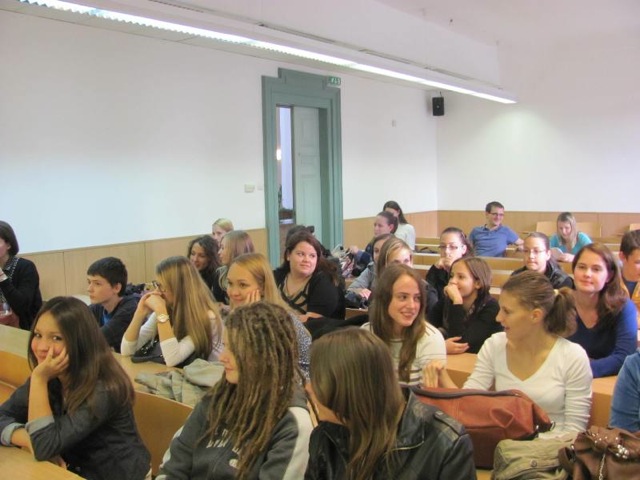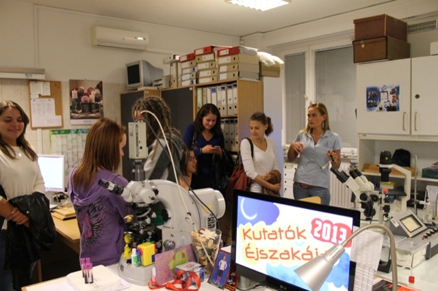 A 2013-as kutatók éjszakáját Budapesten töltöttük, ahol a számtalan egyetem programja közül mindenki a saját érdeklődésének megfelelően választhatott programokat, így az elsősorban műszaki tudományterületek felé érdeklődők a Budapesti Műszaki Egyetemen, míg az Orvos- és Természettudományok kedvelői a Semmelweis Egyetemen válogathattak a fantasztikus előadások között. Én elsőként a Műegyetem nagyfeszültségű laboratóriumát tekintettem meg, melyben bemutatták a villámlás és az elektromágnesesség világát. Láthattuk azt is, hogy hogyan javíthatók a feszültség alatt lévő villamos vezetékek. A nagyfeszültségű laboratóriumot követően a „legyél te is biomérnök” című előadáson vettünk részt. Azonban a két program közötti időszakot is hasznosan töltöttük, mert az épület másik előadótermében a nitrogéntartalmú szerves vegyületekről szóló előadás első párpercét is sikeresen elcsíptük. A biomérnöki laboratórium látogatása egy igen tartalmas és sokszínű program volt, mely több helyszínen mutatta be számunkra ennek a tudományterületnek a varázslatos világát. Ezután ketten átjutottunk a Semmelweis egyetemre, ahol nagy erőfeszítések árán bejutottunk a bonctermekbe. Egy életre szóló élmény marad az, amikor a kezemben tarthattam az emberi szerveket és hallgattam az orvostanhallgatók előadását az éppen kezemben lévő szívről. De mindenki más is hasonló élményeket gyűjtött. Volt, aki a kulcslyukon keresztüli operációt nézte végig, mások a lézeres szemműtéten vettek részt és akadtak, akik a dietetikai előadásokat nézték meg. Bárhogyan is, biztos vagyok benne, hogy mindenki élményben gazdag estét töltött el, amiért ezúton szeretnénk köszönetet mondani az Öregdiákok Baráti Körének a támogatásért illetve tanárainknak a szervezésért.