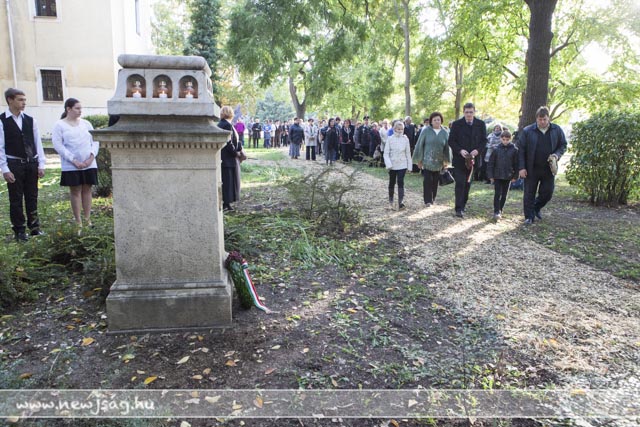 Seidl Ambrus plébános beszéde után az ünnepséget a városközpont-rehab által körbezárt 48-as emlékműnél koszorúzás zárta, ahol dr. Zima János tárogatószóval várta az emlékezők csoportját.