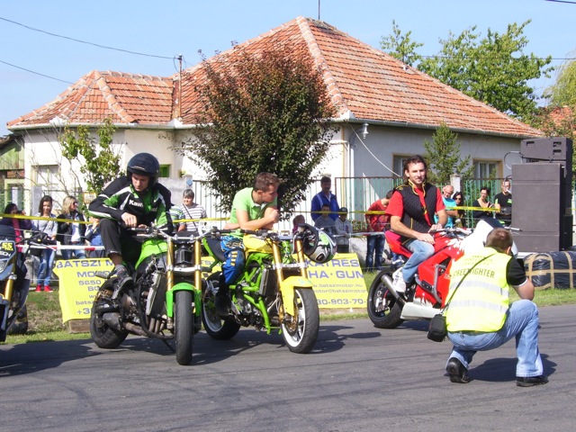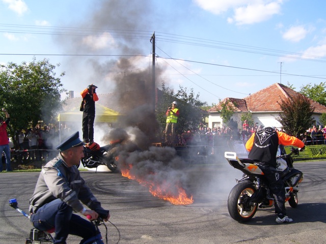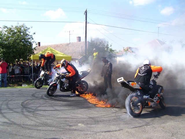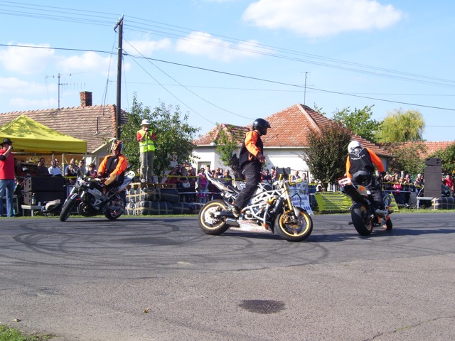 Szombaton rendezték meg a 9. Streetfighter napot Mezőberényben. Kellemes őszi napos időben a több ezer néző igazi show műsort láthatott. Felléptek ezen a napon az ország igazolt junior versenyzőitől a világbajnok Angyal Zoltánig mindazok, akik ezt a kemény sportot megszállottsággal űzik. Gurultak egy keréken, füstöltették a gumikat, és a tűzzel is látványosan játszottak. A szervezők több technikai betét műsorral színezték ezt a fergeteges napot. A juniorok között fellépő Podani Milánnak balszerencséjére a program első harmadában elszakadt a motor gázbowdenje. Varga Robi önzetlenül átadta egyik motorját, így igaz visszafogottabban az idegen motorral, de hősiesen fejezte be a bemutatót Milán. Példa értékű gesztus volt, köszönet érte. Milánt értékes ajándékcsomaggal jutalmazta a zsűri. Varga Robi ezen a napon szintén juniorként indult és elkápráztatta Mezőberény közönségét a Szarvason is bemutatott technikailag bravúros műsorával. Ezt a kiváló teljesítményt a zsűri Mezőberény különdíjával jutalmazta. Gratulálunk fiúk, sok sikert az országos bajnokság utolsó, októberi fordulójához!
