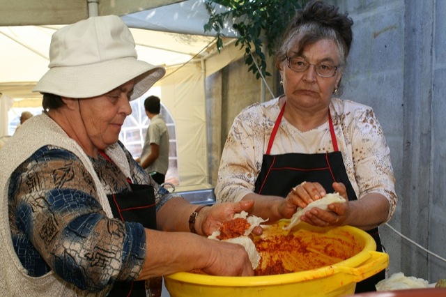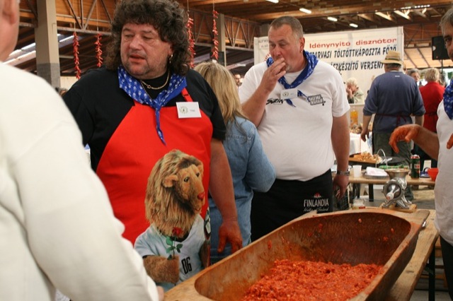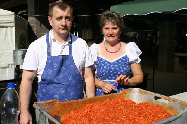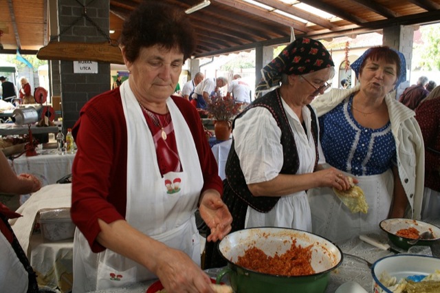 Lelkesedésből nem volt hiány, mindenki szorgalmasan gyúrta a töltött káposzta alapanyagát, vagy a kolbászt. Így tettek a határmenti Tornyáról (Erdély) érkezett „Pro Pir Kultúra” csapat tagjai is. Vezetőjük, Tóth Piroska elmondta: mivel azonos régióról van szó, így náluk is hasonló módon készítik a töltött káposztát és a kolbászt, mint Békésben.