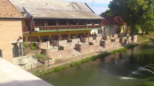 Ebéd után megnéztük a Fehér és a Fekete-Körös összefolyását, a Kettős-Köröst. Több mint 300 üdülő, a Körös bal partján pedig kemping várja a pihenni, üdülni vágyókat. A két part között személyszállító komp biztosítja az átkelést. A túlsó parton már Gyula fogadja az utasokat. Sokáig nézelődtünk a parton, a táj itt festői szépségű, sportolásra is alkalmas. Ottlétünkkor éppen egy vízisízőt láttunk gyakorlás közben.