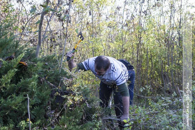 A hatos parcella olyan, mint a dzsungel. Áthatolhatatlan. Az ötfős társaság fejszékkel, metszőollókkal, kétkaros ágvágókkal esett a buja növényzetnek, ahonnan időnként -egy-két méterre a bozótot irtóktól- őzek rebbentek fel.