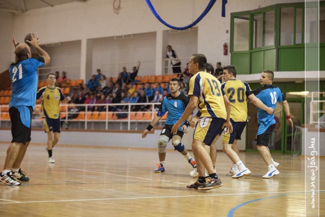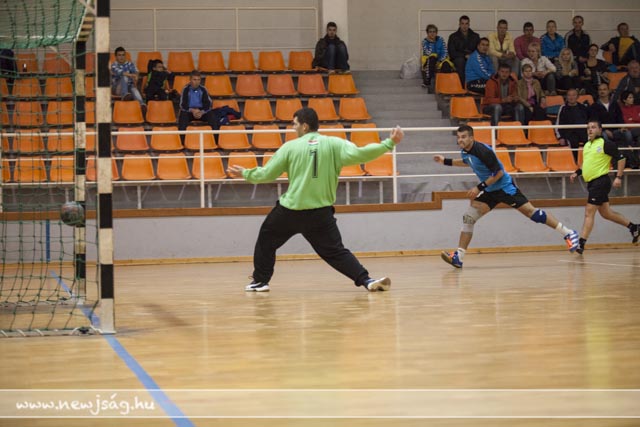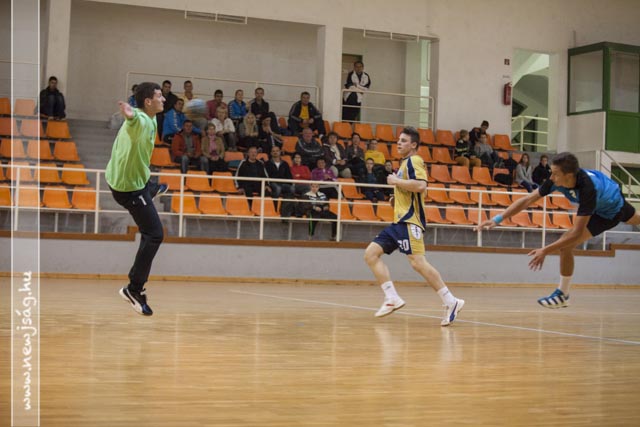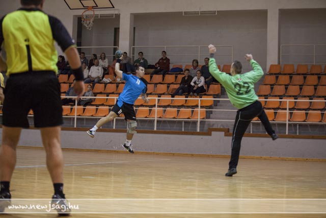 A mérkőzés első része igen kemény, de sportszerű védekezést hozott mindkét fél részéről, az első gólra Barci révén a 3.percig kellett várni, majd két percet követően sikerült csak az egyenlítés a vendégeknek, majd Dina betörése büntetőt ért, amit sértett biztos kézzel értékesített. Ezt követően a vendégek percei következtek, akik rendezvén védekezésüket bizony öt perces gólcsendre ítélték vendéglátóikat, és Tipi majd Molnár két találatával át is vették a vezetést (2-4). A továbbra is klasszikus átlövő nélkül játszó hazaiak, Bagyin és Barci szélső góljaival a félidő derekára egalizálták az eredményt 4-4, ami azt mutatta, hogy továbbra is a védekezés játszotta a kulcsszerepet mindkét csapatnál. A fej-fej melletti küzdelemben felváltva esetek a gólok (4-5, 5-5, 6-5) majd a kiállításoknak köszönhetően meglógott a vendégcsapat (6-8), amely hátrányt a serdülő korú Paraszt Attila két biztos kézzel értékesített büntetője egyenlített ki (8-8). Az újabb emberhátrány viszont már kíméletlenül kihasználták a rutinosabb vendégek, és jentősebb előnyre tettek szert (8-13), amelyet a félidő végére Barczi duplája után 4 gólra sikerült csökkenteni (11-15).