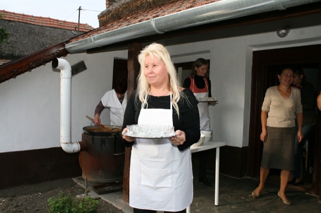 A programot vacsora zárta, melynek keretében babgulyást és süteményeket fogyaszthattak a jelenlévők. Az ízletes birsalmasajtot a Tulipános ház udvarán termett birsalmából készítették.