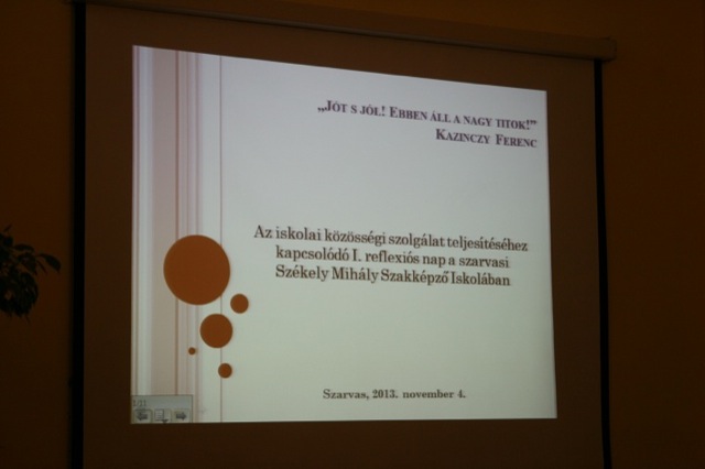 A közösségi szolgálattal kapcsolatos legfontosabb információkat Tóthné Lipták Erzsébet intézményegység-vezető, a program iskolai koordinátora osztotta meg a jelenlévőkkel. Mint mondta, a szakképző iskolában eddig 47 diák összesen 427 óra közösségi szolgálatot teljesített. A legtöbben (24-en) a Szarvasi Polgárőr Egyesületben tevékenykedtek, de sokan választották helyszínül a Békés Megyei Körösmenti Szociális Centrumot és a békésszentandrási gondozási központot is. A kondorosi Többsincs Óvoda, a kunszentmártoni ÁMK óvodája, a Nagycsaládosok Szarvasi Egyesülete, a Szlovák Általános Iskola, Óvoda és Kollégium, valamint a református egyház is fogadott diákokat.