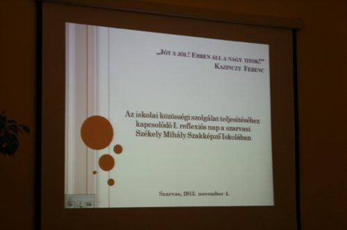 A törvény szerint 2016. január 1. után csak azok a diákok bocsáthatók érettségi vizsgára, akik legalább 50 órát töltöttek közösségi szolgálatban. A Székely Mihály Szakképző Iskola diákjai közül már sokan végeztek különböző helyeken ilyen tevékenységet. Az eddigi tapasztalatokról hallhattunk azon a fórumon, melyet hétfőn délután tartottak a Fő téri iskola dísztermében.