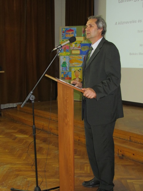Bíró Gyula, a GFF Szarvasi Gyakorlóintézményének igazgatója, a konferencia plenáris előadásainak moderátoraként azt a kérdést tette föl, hogy elegek-e a köznevelést érintő reformok, vagy teljes átalakulásra van szükség? Merünk-e elébe menni a jövőnek, merjük-e nemcsak a kor igényeit kielégíteni, hanem a pedagógia alkalmazott tudományának segítségével egy erős, értékrendjében megingathatatlan, a készségek fejlesztésére, az emberre érzékenyen reflektáló köznevelési gyakorlatot létrehozni. A konferencia résztvevőit Gaál Roland Ferenc Járási Hivatalvezető nyitotta meg Erdős Norbert kormánymegbízott úr megbízásából, olyan finom alap felütést teremtve a köszöntőjével, amely a gondolkodás gondolkodói ösvényét jelölte ki a konferencia hallgatóságának.