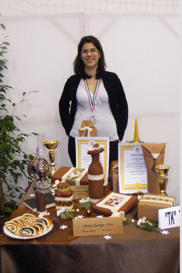 Dósai Dorina 2/14. E osztályos kereskedő tanuló versenymunkáját 2. helyre rangsorolta és ezüstéremmel díjazta a szakmai zsűri. Dorina remek érzékkel párosította a természetes alapanyagokat a míves díszítő elemekkel. Fontos volt az is, hogy a különleges csomagolási technikákat minél változatosabb formájú termékeken mutassa be. A mezőny évről-évre bővül. Ebben az évben 23 csapat igyekezett eleget tenni a verseny kiírásnak.