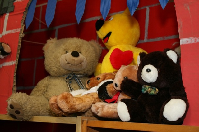 A kétszáz játékmacit Paluska Katalin adományozta a könyvtárnak. Mint mondta, ez a kollekció több évtizedes gyűjtés eredménye. A mackók kényelmes lakhelyeit, azaz a díszleteket Urbancsokné Pljesovszky Ildikó készítette.