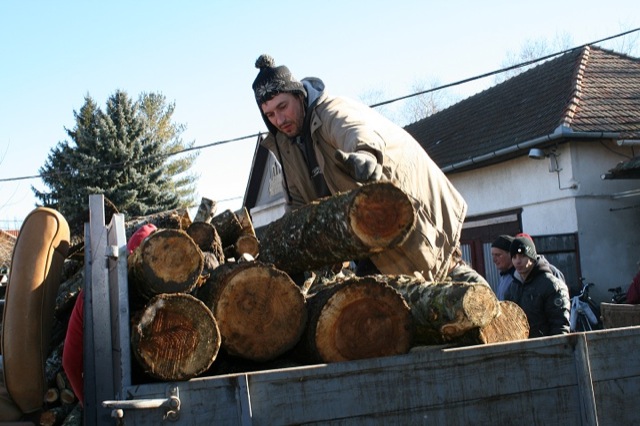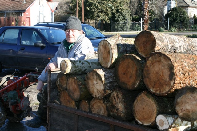 – Ezeken a nyárfákon nemrég még a rigó fütyült, így csak a következő télen lesznek alkalmasak fűtésre. Nem baj, jól jön az majd akkor is mindenkinek! – mondja Viszkok János, aki azt is elárulja, hogy nem magának viszi a fát, hanem idős szomszédasszonyának segít a fuvarozásban.