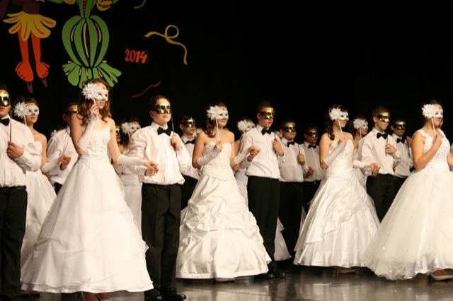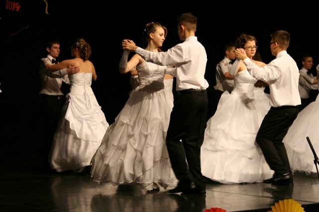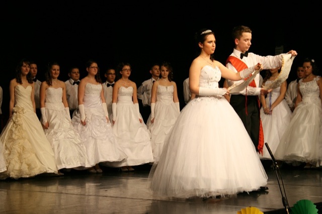 A rendezvény természetesen keringővel kezdődött. A táncoló párok kiséretében bevonult a hercegi pár: Závoda Beatrix és Szklenár Péter. Valamennyi osztályközösség vidám, táncos programmal készült.