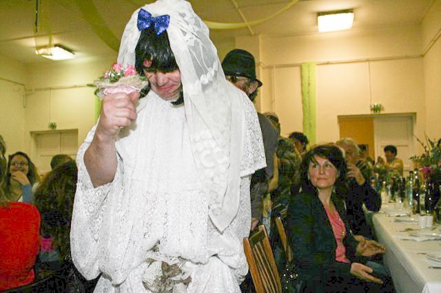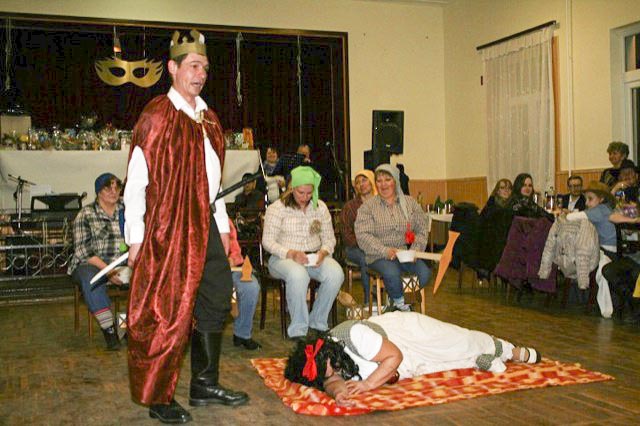 A házgazda csabacsűdi hagyományőrzők sem maradtak adósak a műsorral: egy bolondos lakodalmat vittek színre. Volt násznagy, vőlegény és menyasszony, no meg vidám násznép is. A függönyből varrt menyasszonyi ruha azonban korántsem egy szép hölgyet, hanem egy tagbaszakadt férfit rejtett, a közönség nem kis derültségére.