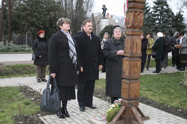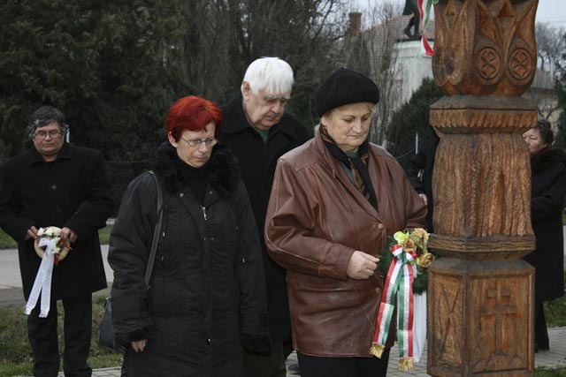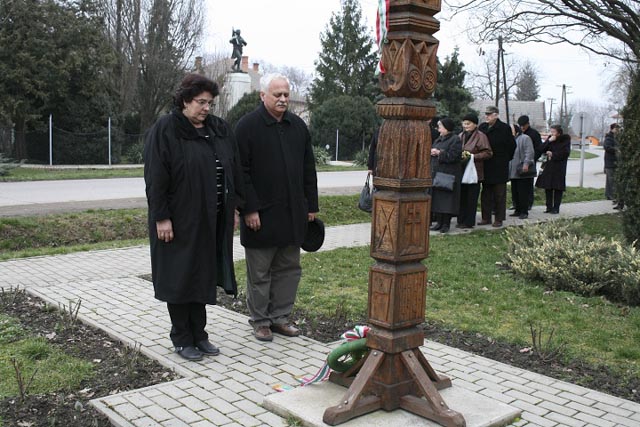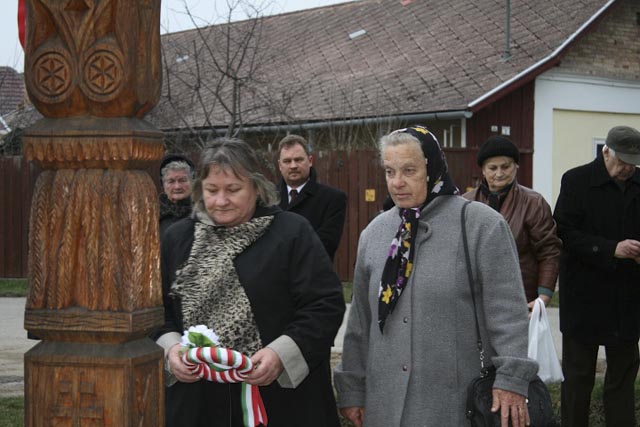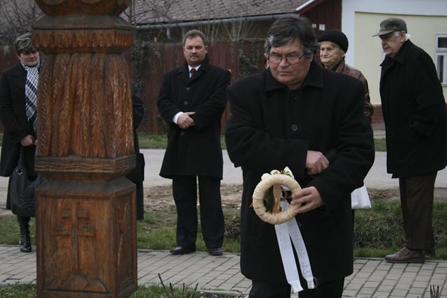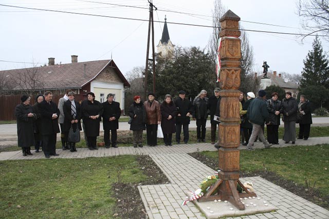 A megemlékezés után a résztvevők a községháza előtti kopjafához vonultak, ahol koszorúkat, mécseseket helyeztek el.