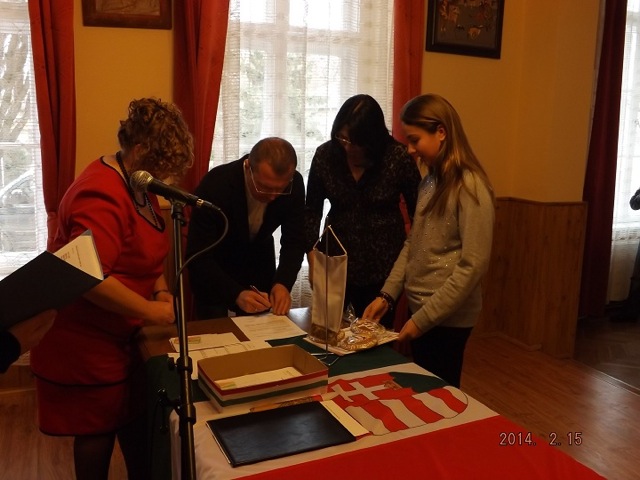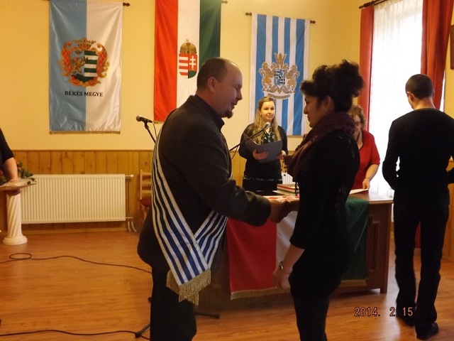 A polgármester befogadó beszédében köszöntötte legújabb magyar állampolgárainkat, majd átadta részükre honosítási okirataikat, valamint a település ajándékait, Bagi Erika anyakönyvvezető pedig a lakcímet igazoló hatósági igazolványaikat, továbbá a 2014. évi országgyűlési képviselőválasztások regisztrációjához szükséges adatlapot és tájékoztatót.