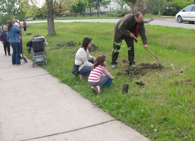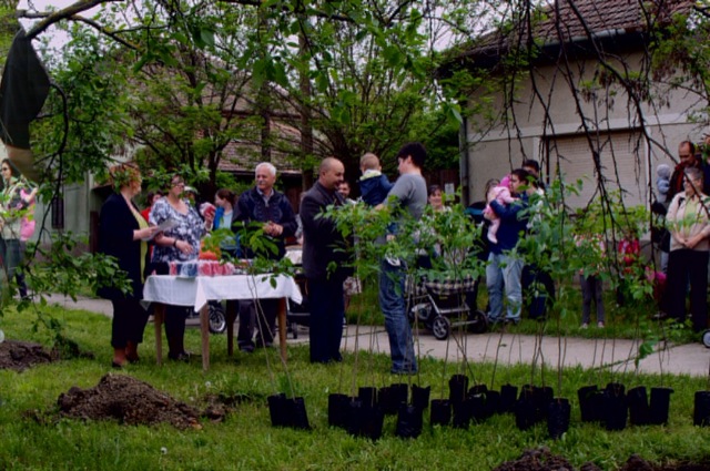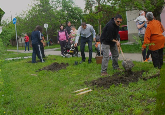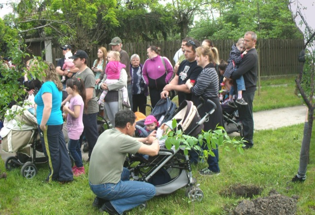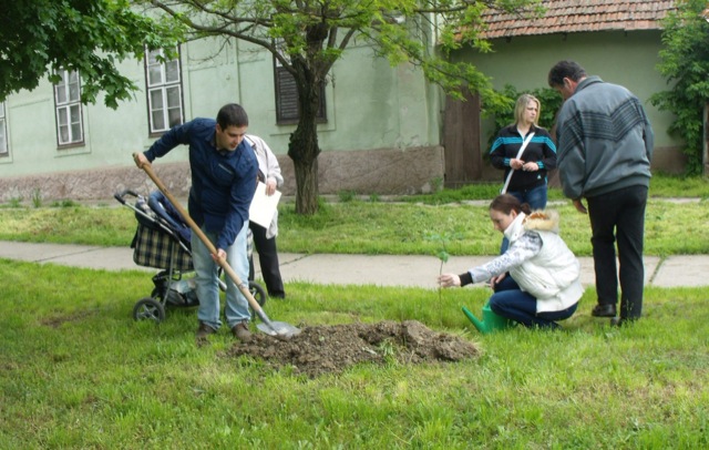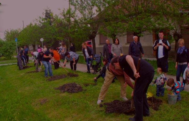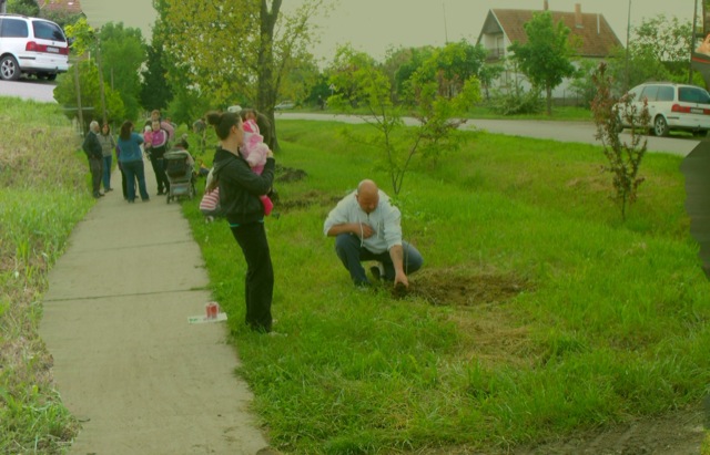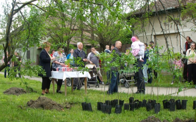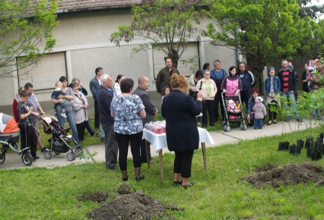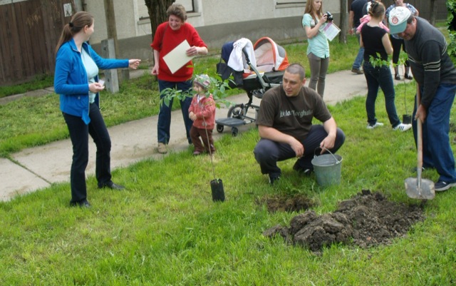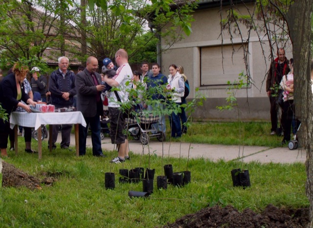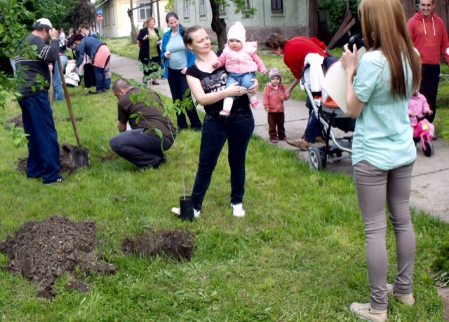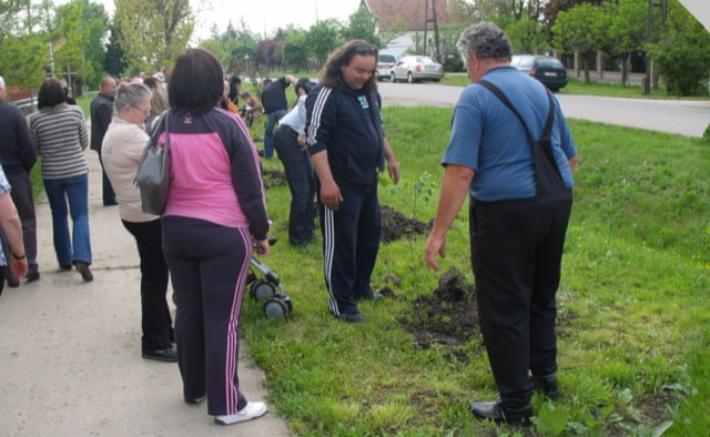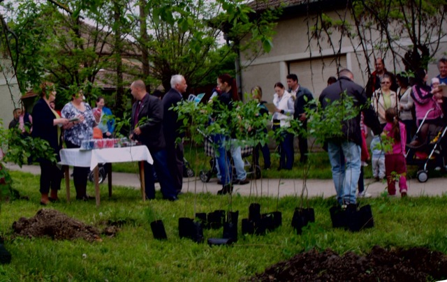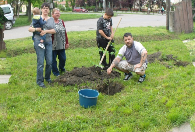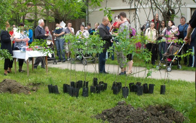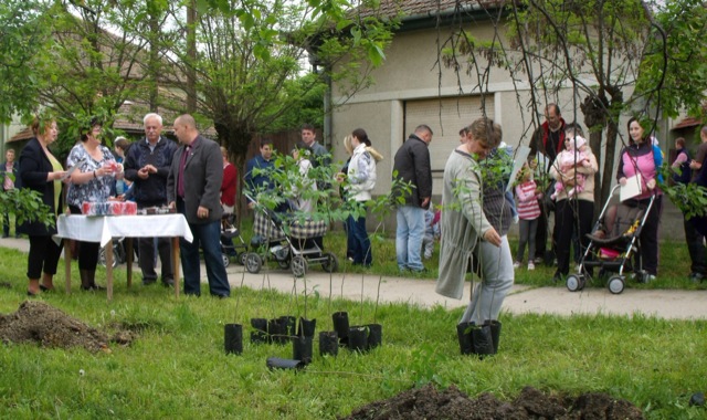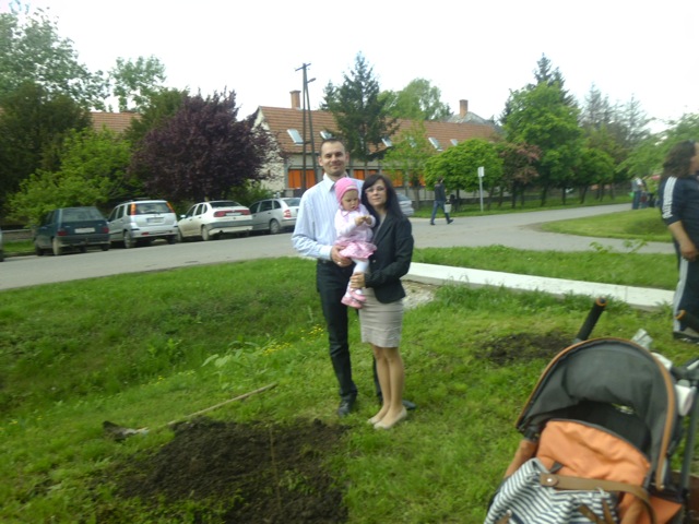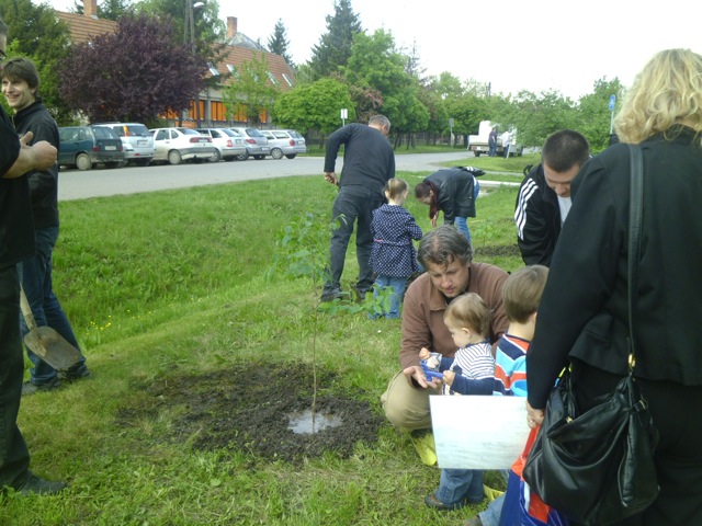Az idén immáron hatodik alkalommal került megrendezésre községünkben az a hagyományos rendezvény, melynek keretében a tárgyévet megelőző évben született gyermekek számával megegyező nemes facsemetét ültet az önkormányzat a kisgyermekek, a szülők és a nagyszülők közreműködésével. Ezúttal a Szent László utca Kálvin utcától Bethlen Gábor utcáig terjedő szakasza adott otthont és terepet a faültetésnek. 35 kisgyermek családja kapott meghívót, és az időjárási előrejelzés ellenére, miszerint esős idő várható, nagyon sok család jelent meg, bízva abban, hogy az időjárás kegyes lesz. Mire megkezdődött az ünnepség, már hétágra sütött a nap. Sinka Imre polgármester úr és Molnár Imre Zoltán képviselő úr, bizottsági elnök adta át az emléklapot az érintetteknek egy gravírozott, névre szóló bögrével egyetemben, Dr. Olasz Imréné dr. jegyző asszony és Bagi Erika anyakönyvvezető közreműködésével. A pici gyermekek mézeskalácsot is kaptak ajándékba. Az ünnepélyes procedúra után nagy lelkesedéssel indult meg a munka, az előre elrendezett terepen 35 juharfa kezdte meg életét.