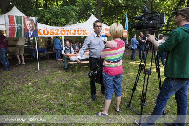 Az Erzsébet-ligetben a fesztiválsátor körül a pártok a megszokott helyeiken felállított sátrakban várták híveiket. A Fidesz sátrán maga Orbán Viktor köszönte meg a szavazatokat, de a Jobbiknál sem szomorkodtak, sőt, az MSZP-nél is félretették erre a napra az önvizsgálatot. Új tét, új nyeremény.