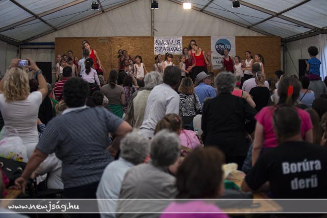 A fesztiválsátorban gyermekműsorok, zenés és táncos műsorok váltották egymást. A Rezesbanda után két tehetségkutató-felfedezett, a harmonikás-énekes Szabó Ádám, ill. Csordás Ákos lépett a színpadra szorosan a sarkukban Mótyán Tiborral és zenekarával. A színpadi műsorokat a szarvasi táncos és aerobicos együttesek táncórája zárta.