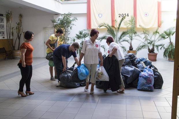 Szerdán azért ment a gimnáziumba a Máltai két munkatársa, hogy a legutóbbi gyűjtés eredményét átvegyék és a Civil Házban levő telephelyükre szállítsák, majd onnan válogatás után adják oda azoknak, akiknek szükségük van rá. Most a szentandrási Hrncsjár-tanyán nyaranta táborozó hátrányos helyzetű gyerekeknek, ill. a nyáron szintén Békésszentandrásra érkező csángó fiataloknak gyűjtenek ruhaadományokat.