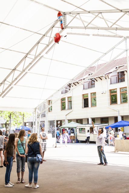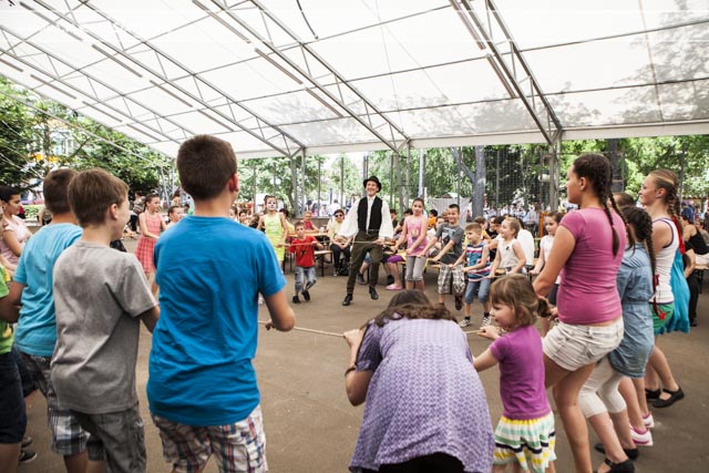 Változatos programokkal várták a gyerekeket a Cervinus Teátrum munkatársai szombaton, a grundon és környékén. A sátorban a Suttyomba zenekarral és táncházzal kezdték a produkciók sorát. A továbbiakban sem a csend volt a jellemző a grundon és a játszótéren. Előbbiben zenés produkciókkal, bohócokkal, kung-fu bemutatóval, zumbával, mesejátékkal kápráztatták el, míg a fák alatt és a parkolóban arcfestéssel, ugrálóvárral, játszóházzal várták a gyerekeket, akik a szokásos népi játék olimpia változatos próbatételein gyűjthették a karkötőket, hogy beváltsák egy kis ajándékra.