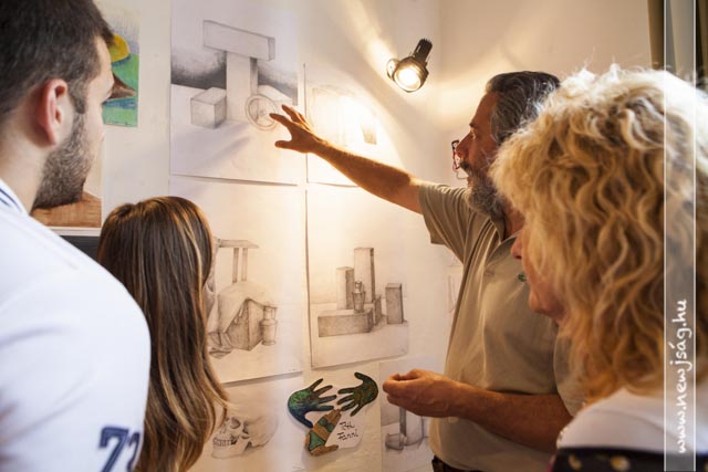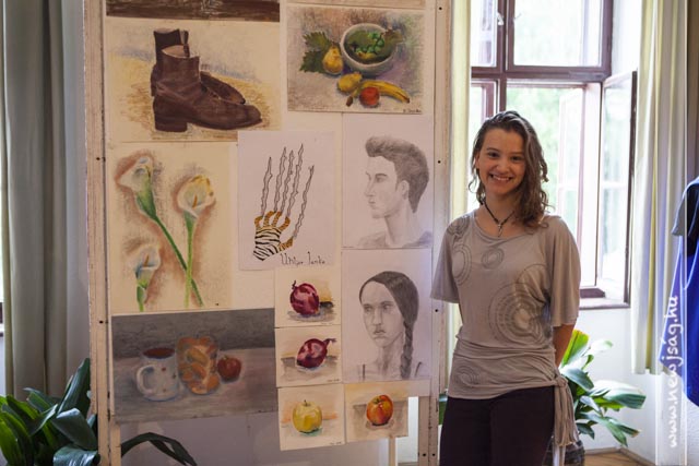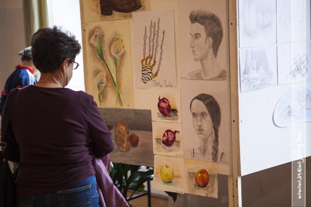 Zongora- és fuvolaszóval fogadták a vendégeket a Chován Kálmán Művészeti Alapiskola zenei tagozatának hallgatói, Závogyán Zsófi, Frankó Tamara és Sebők László, kollégáik, a képzőművész tagozatosoknak a kiállítására érkezőket szombaton a Tessedik Sámuel Múzeum dísztermében. Ahogy azt Brachna Irén igazgató megjegyezte, az idén nem nőttek az égig a festmények a falakon, de így talán tartalmasabb, talán színvonalasabb is lett a kiállítás. Kicsit valóra váltak aggodalmai, hogy kevesen jönnek el a megnyitóra a programdömping miatt, mert tényleg kevesebben jöttek, mint tavaly. Ez nem feltétlenül az érdeklődés hiányát jelenti, inkább annak volt a következménye, hogy kint 14 fokot mutattak a hőmérők, és a szél a homokot kotorta a városrehab hadműveleti zónájából.