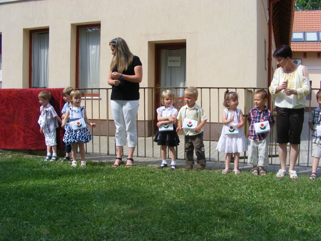 Először a Katica és a Mókus egység gyerekei búcsúztak a bölcsődétől majd a Micimackó egység következett. Mindhárom egység ünneplőbe öltözött ballagói mondókákkal és mozgásos versikékkel örvendeztette meg a vendégeket. A rövid műsor után a gyerekek szüleikhez szaladtak, akik boldogan és büszkén ölelték magukhoz ballagó csemetéjüket.