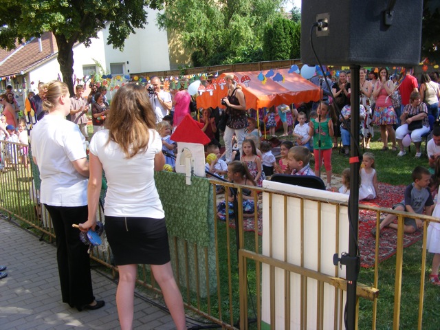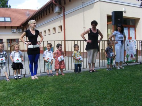 Az egyik nagycsoportos kislány édesapja Horváth Z. Olivér evangélikus lelkész vidám gyermekdalokat énekelt gitárkísérettel, amelyek tetszettek a gyerekeknek és a vendégeknek egyaránt. A bölcsőde kisgyermeknevelői „A kiskakas gyémánt fél krajcárja” című mesét bábozták el, melyet a gyermekek nagy érdeklődéssel figyeltek. A műsorok ideje alatt és után a gyermekek süteményeket fogyaszthattak és teát, valamint üdítőt ihattak a nagy hőségben.