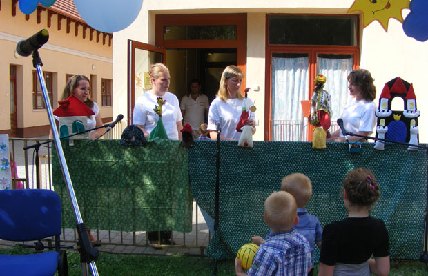 Az egyik nagycsoportos kislány édesapja Horváth Z. Olivér evangélikus lelkész vidám gyermekdalokat énekelt gitárkísérettel, amelyek tetszettek a gyerekeknek és a vendégeknek egyaránt. A bölcsőde kisgyermeknevelői „A kiskakas gyémánt fél krajcárja” című mesét bábozták el, melyet a gyermekek nagy érdeklődéssel figyeltek. A műsorok ideje alatt és után a gyermekek süteményeket fogyaszthattak és teát, valamint üdítőt ihattak a nagy hőségben.