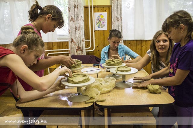 Dombovári Zita és Fabó Éva művésztanárok a hét első felében a tradicionális mesterségek közül a fazekasság, takács, ill. a kosárfonó mesterség alapjaival, míg pénteken a gyöngyfűzéssel, gyöngyszövéssel ismertetik meg a gyerekeket.