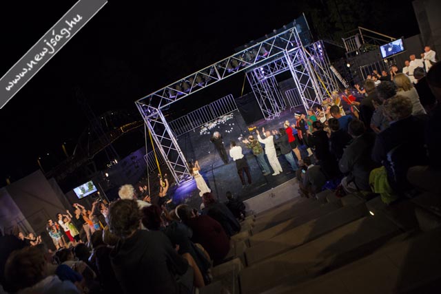 Pénteken este mutatta be az Egri Gárdonyi Géza Színház Déry Tibor-Pós Sándor-Presser Gábor-Adamis Anna – már klasszikusnak számító – Képzelt riport egy amerikai popfesztiválról című musicaljét, teltházzal.