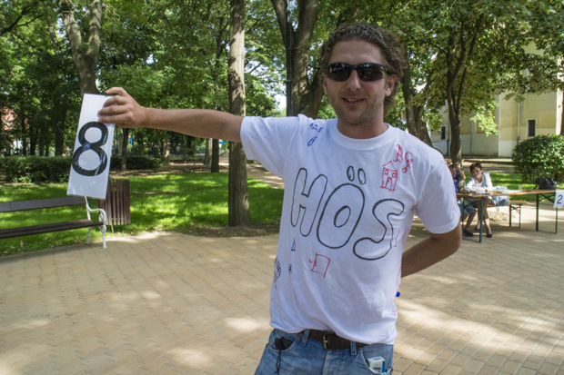 – Rendkívüli nagy köszönettel tartozunk az önkénteseinknek, akik mindenféle támogatást nyújtottak nekünk ahhoz, hogy ez a rendezvény ilyen jó hangulatban, nagy létszámban valósuljon meg. Az egyik ilyen önkéntes Magyar Csaba, aki a nap hőse címet viseli és aki nagyon sok mindenben segített nekünk. Eszközöket, tárgyi feltételeket, hűtőt, mindent idevarázsolt a térre – mondta Szabó Szilvia. – Emellett ma főállásban tényleg hős. A gyerekeknek az az egyik feladat ma, hogy meg kell találni a téren a hőst, ezér Csaba egy HŐS feliratú pólóban tetszeleg. A pólójára aláírást gyűjt, cserébe bélyegez.