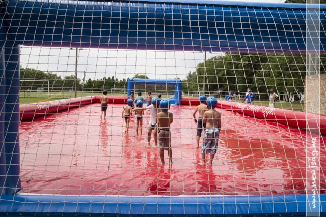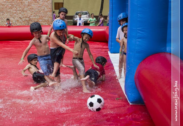 Már kora délelőtt Hevesi Imi hangolta a gyerekeket a bulira, ill. csalogatta a falubelieket a környékre. Az egyik legnépszerűbb szám a vízifoci volt, ahol annak ellenére, hogy a játék látszatra másról sem szólt, mint az esésekről, de még inkább a hatalmas esésekről, – volt a legnépszerűbb. Ennek ellenére a gyerekek nem akartak elfogyni a felfújható fallal körbevett piros pályáról, aminek a mélyebb részeit alkalmi strandként is használták két labdamenet között. A vízifocin túl is rengeteg program várta a gyerekeket. A falunap gyakorlatilag egy második gyermeknapként is fogható volt azzal a különbséggel, hogy néhány játékukat a felnőttek is kipróbálhatták. Itt is volt részeg szemüveg, amivel a gyerekek átélhették milyen is lenne ha becsípnének. A felnőtteknek ebben a műfajban előnyük volt, mert ők élesben is kipróbálhatták, mi a különbség a igazi és a virtuális állapot között. Ezt legalizálni egy sörivóverseny lett volna hivatott, de sajnos inkább a kibicek jelentkeztek, mint a versenyző kedvűek, így az állandóan tolódott, de legalább bemelegíteni több idő maradt a vállalkozóknak.