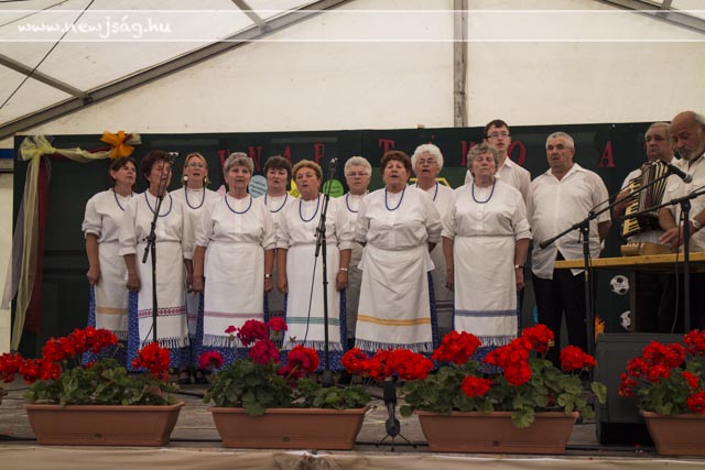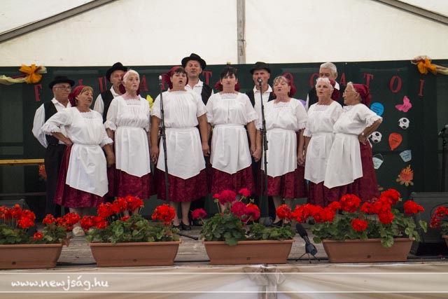 Hevesi Imi után is mozgalmas volt a színpad. A gyerekcsoportok és a szülők műsora között a Csabacsűdi Hagyományőrző Népdalkör és Citerazenekar, ill. az idei díszvendég, a felvidéki Csata testvértelepülés népdalénekesei, és a szentandrási énekesek vetettek be mindent hangügyben.
